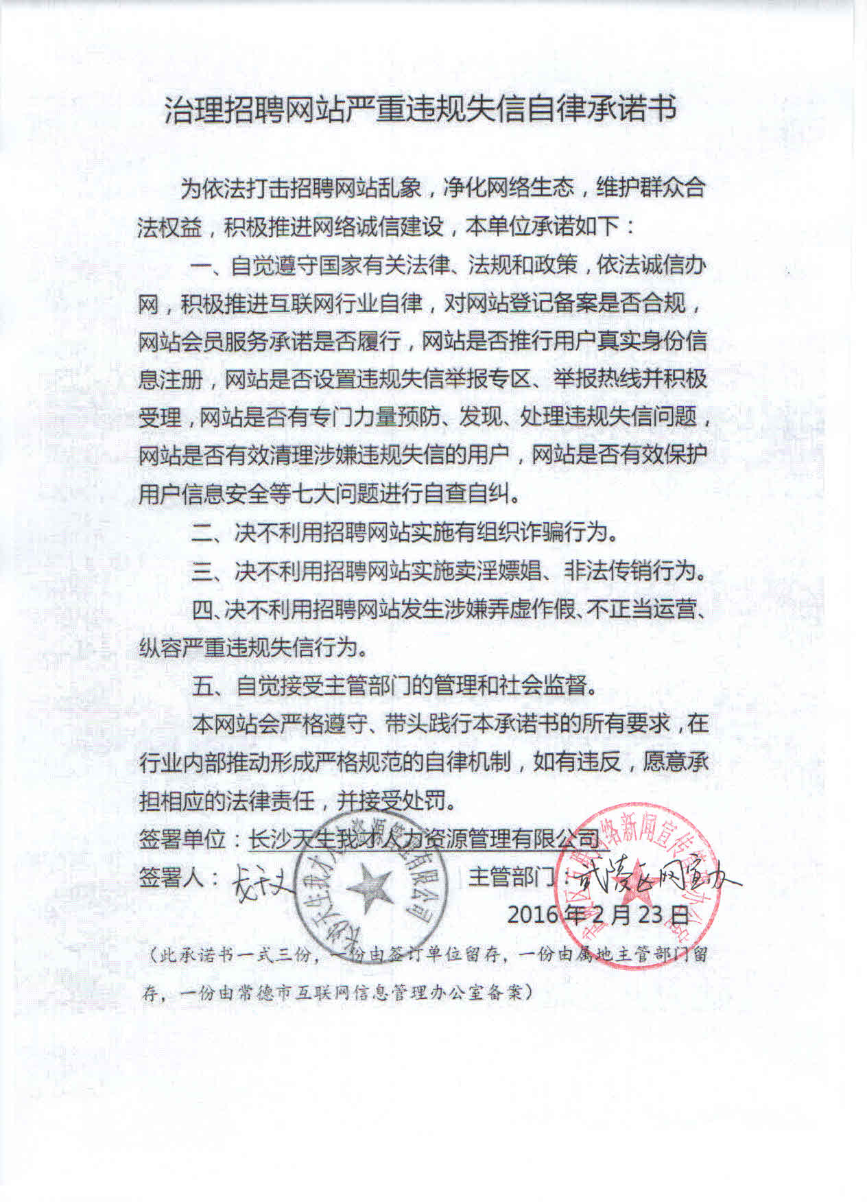 治理招聘網站嚴重違規(guī)失信自律承諾書