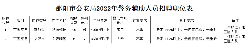 首頁(yè) >> 新聞中心 >> 邵陽(yáng)市公安局2022年公開(kāi)招聘警務(wù)輔助 人員公告