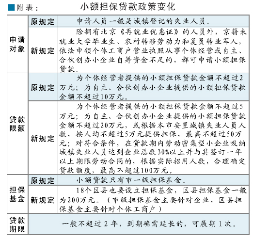 據(jù)市勞動(dòng)服務(wù)管理中心副主任李維介紹,為了讓更多人群享受就業(yè)優(yōu)惠政策,本市將優(yōu)惠政策的適用范圍由原來(lái)的國(guó)有企業(yè)下崗職工、失業(yè)人員、國(guó)有企業(yè)關(guān)閉破產(chǎn)搬遷需要安置的人員,擴(kuò)大到有勞動(dòng)能力和就業(yè)愿望的城鎮(zhèn)登記失業(yè)人員,國(guó)有企業(yè)關(guān)閉破產(chǎn)、調(diào)整搬遷需要安置的城鎮(zhèn)職工,首次將京籍城鎮(zhèn)低保人員、殘疾失業(yè)人員、農(nóng)轉(zhuǎn)居人員和大學(xué)生等納入其中。在鼓勵(lì)勞動(dòng)者自謀職業(yè)、自主創(chuàng)業(yè)的小額擔(dān)保貸款政策方面,自5月1日起將有新變化(詳見(jiàn)附表)。